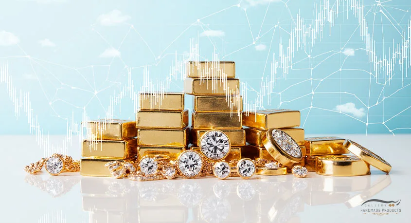 مصنوعات طلا شامل انواع زیورآلات و وسایل تزئینی ساختهشده از طلا هستند که علاوه بر ارزش فلز، اجرت ساخت و طراحی نیز در قیمت آنها لحاظ میشود. دستبند، گردنبند، انگشتر و گوشواره از رایجترین مصنوعات طلا به شمار میروند. این نوع طلا بیشتر برای استفاده شخصی و هدیه دادن خریداری میشود و برخلاف طلای آبشده یا شمش، بعد از فروش، بخشی از هزینه اجرت ساخت به صاحب آن برنمیگردد.