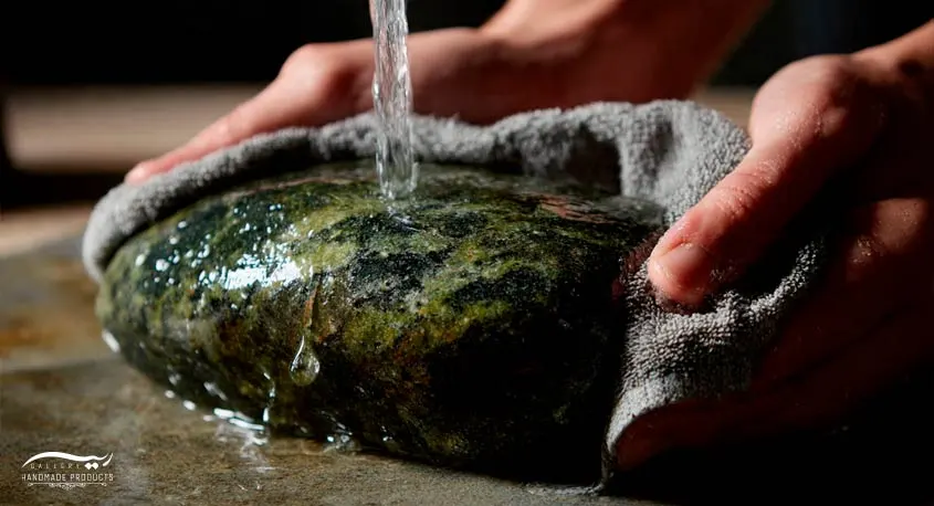 - پاکسازی با آب روان و سپس خشککردن با پارچه نرم: برای پاکسازی سنگ شاه مقصود بهتر است آن را با آب روان شستشو دهید و پس از آن با یک پارچه نرم و خشک به آرامی خشک کنید تا آسیب نبیند.