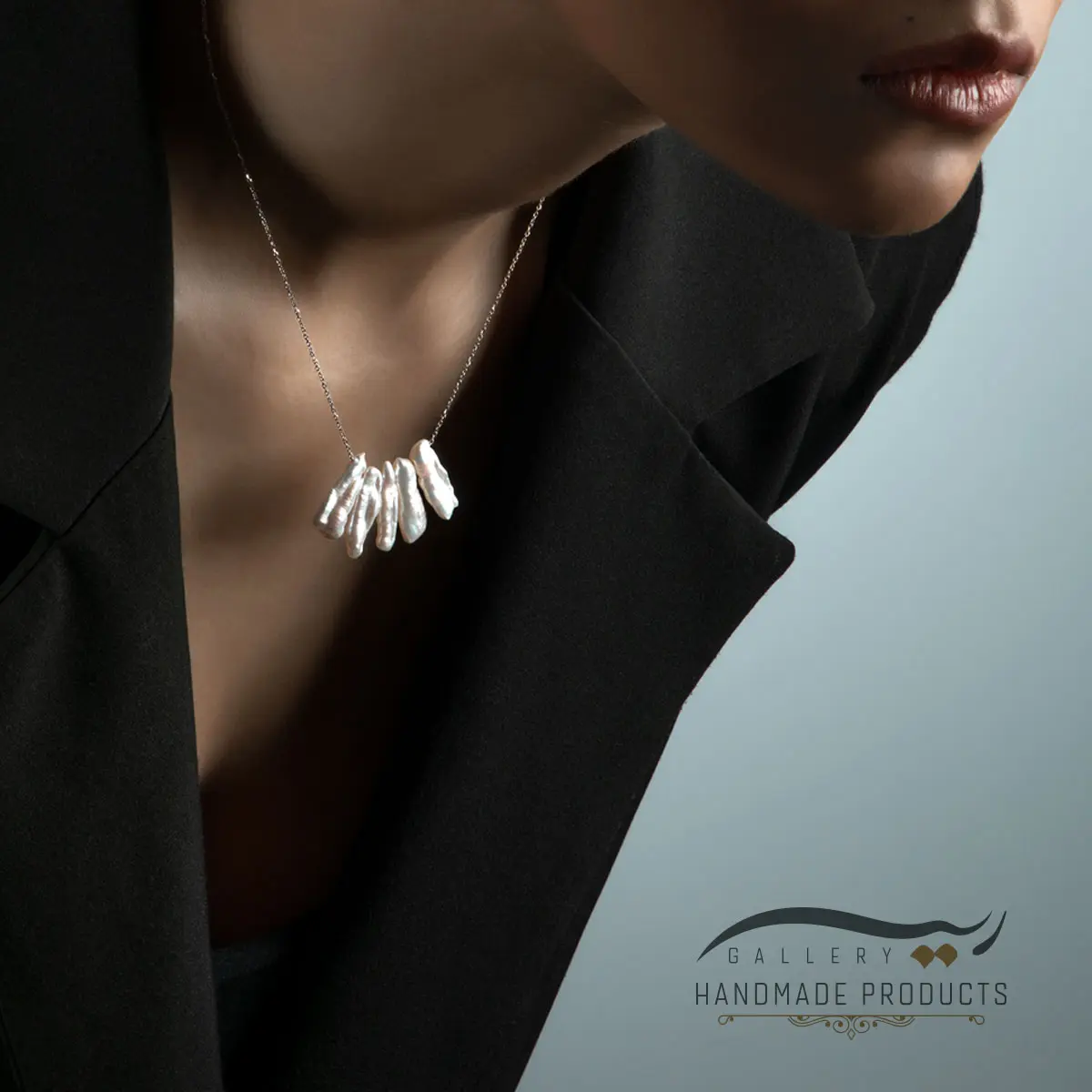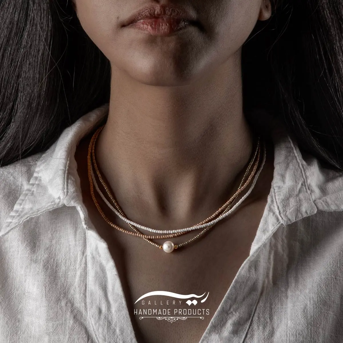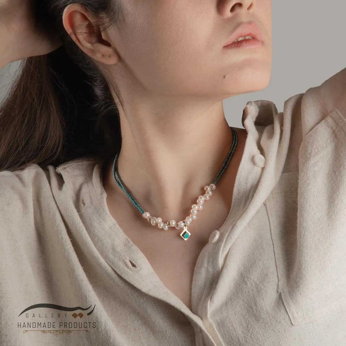 3. گردنبند کلاسیک با آویز مروارید یا سنگ طبیعی