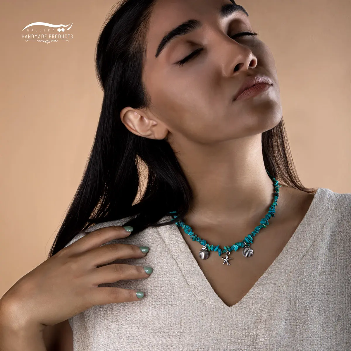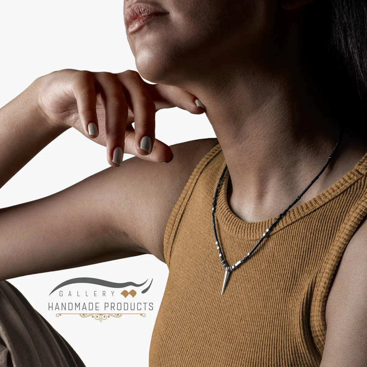 2. زنجیر نقرهای یا طلا با آویز سنگ کوچک یا پلاک ساده