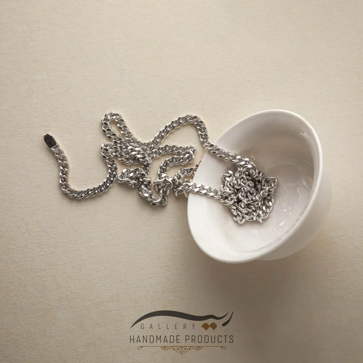 گردنبند نقره مردانه کارتیه گردنبندی میباشد که ریسه گالری برای طراحی و ساخت آن تنها از نقره استفاده کرده است. در این گردنبند، از زنجیر کارتیه 60 سانتیمتری استفاده شده و یک زنجیر کلاسیک محسوب میشود و از دانههای بیضی تخت متصل به هم تشکیل شده است. افرادی که به سایر فلزات حساسیت دارند، میتوانند بدون نگرانی، در تمام طول روز از این گردنبند استفاده کنند.