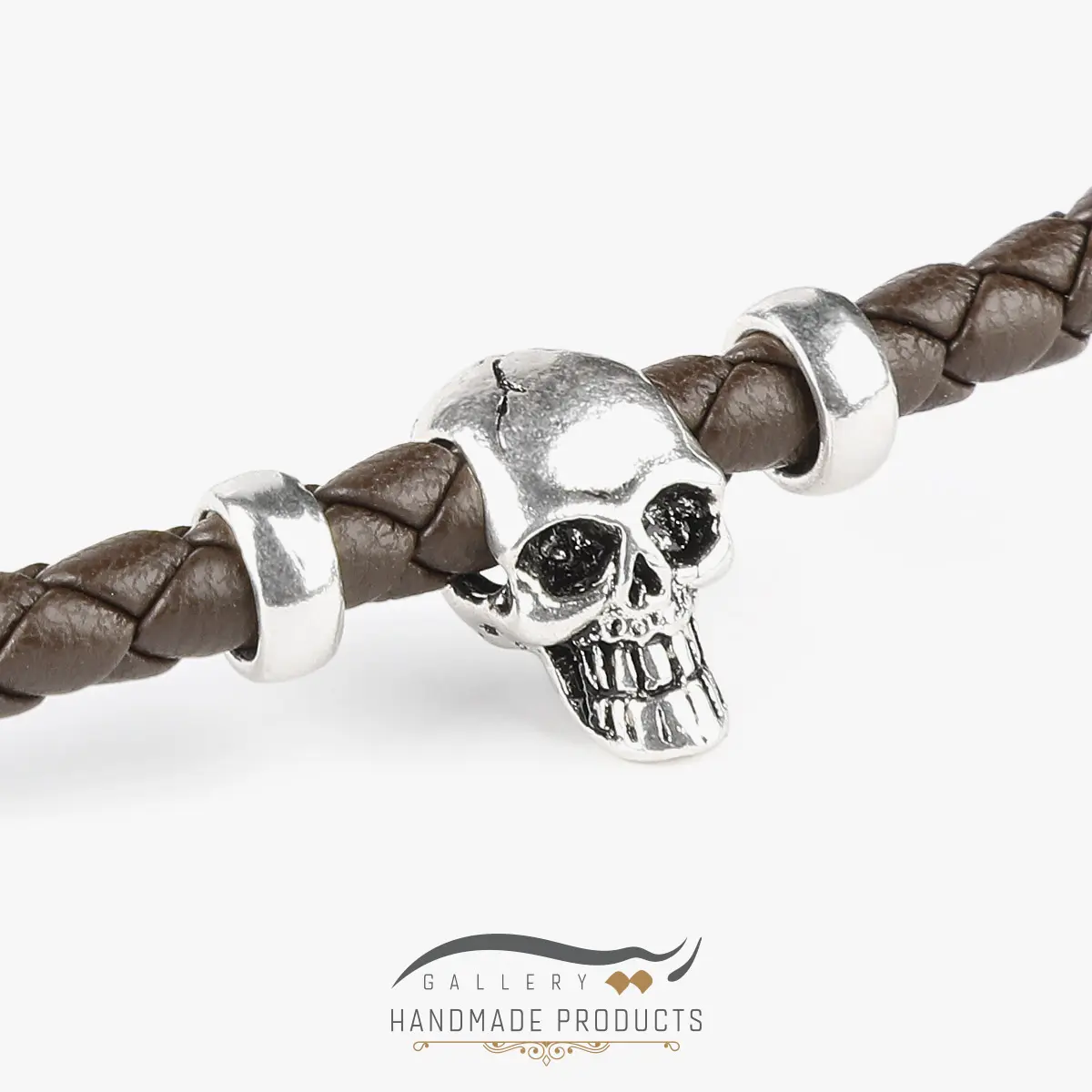 گردنبند نقره مردانه پاراکاس گردنبندی است که ریسه گالری برای طراحی و تولید آن علاوه بر استفاده از نقره، از چرم طبیعی هم استفاده کرده است در طراحی این گردنبند مردانه از پلاکی به شکل جمجمه از جنس نقره همراه با دو مهره نقره در کنار آن استفاده شده است. این گردنبند نقره مناسب برای آقایان بوده و طول تقریبی آن برابر با 50 سانتیمتر میباشد. همچنین در انتهای این گردنبند نیز قفل نقره بکار رفته که باز و بسته کردن آن را ساده میکند. آقایانی که به سایر فلزات حساسیت دارند، میتوانند بدون نگرانی، در تمام طول روز از این گردنبند استفاده کنند.
