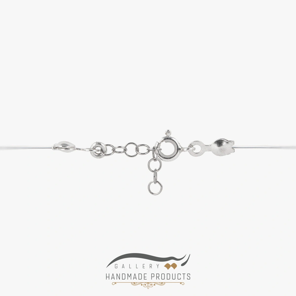 ریسه گالری در طراحی گردنبند نقره زنانه هرا تنها از نقره و نخ نامرئی استفاده کرده است. در این گردنبند زنانه که ظرافت، نکته اصلی این محصول است آویزی به شکل قلب استفاده شده است که داخل رکاب آن سنگ اتمی قرار میگیرد. این گردنبند اندازهای به طول 45 سانتیمتر دارد که 5 سانتیمتر آن مختص به قفل و زنجیر سایز میباشد. خانمهایی که به سایر فلزات حساسیت دارند، میتوانند بدون نگرانی، در تمام طول روز این گردنبند را به گردنشان بیاندازند.