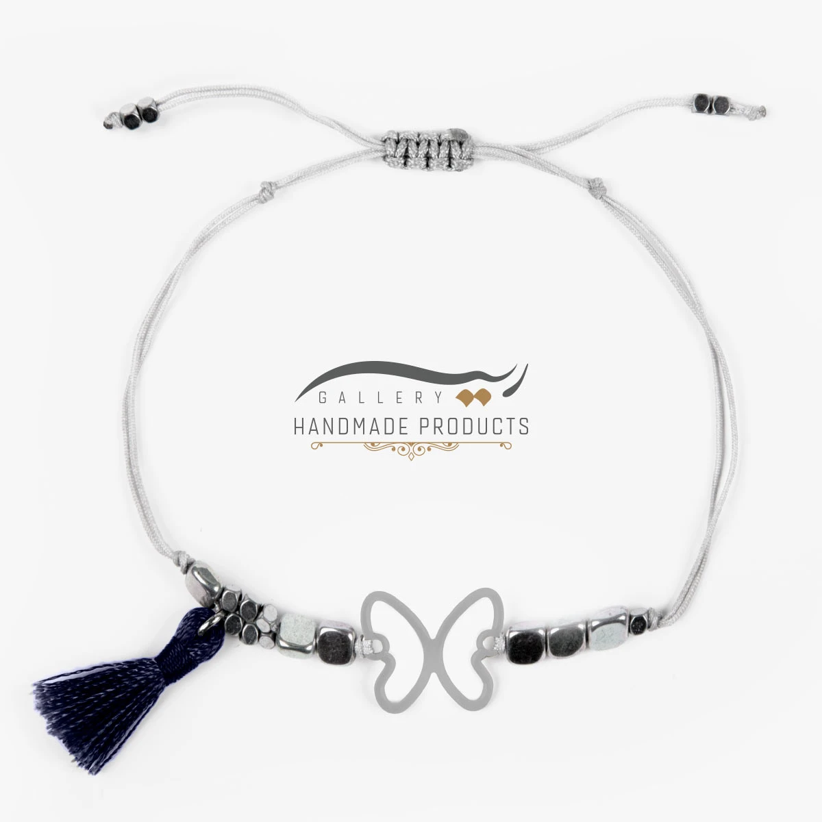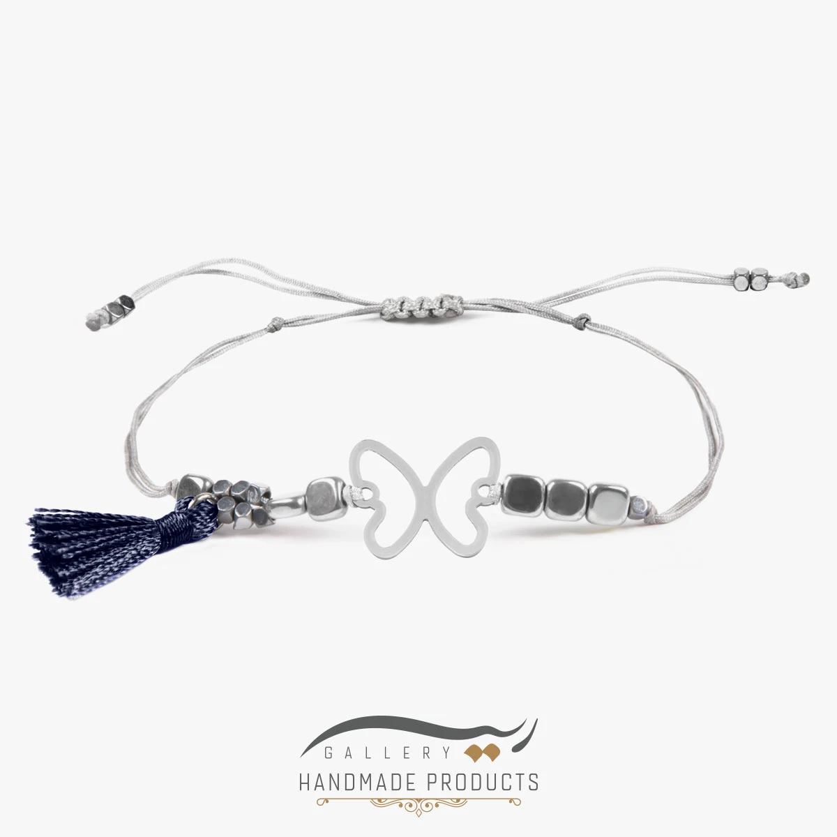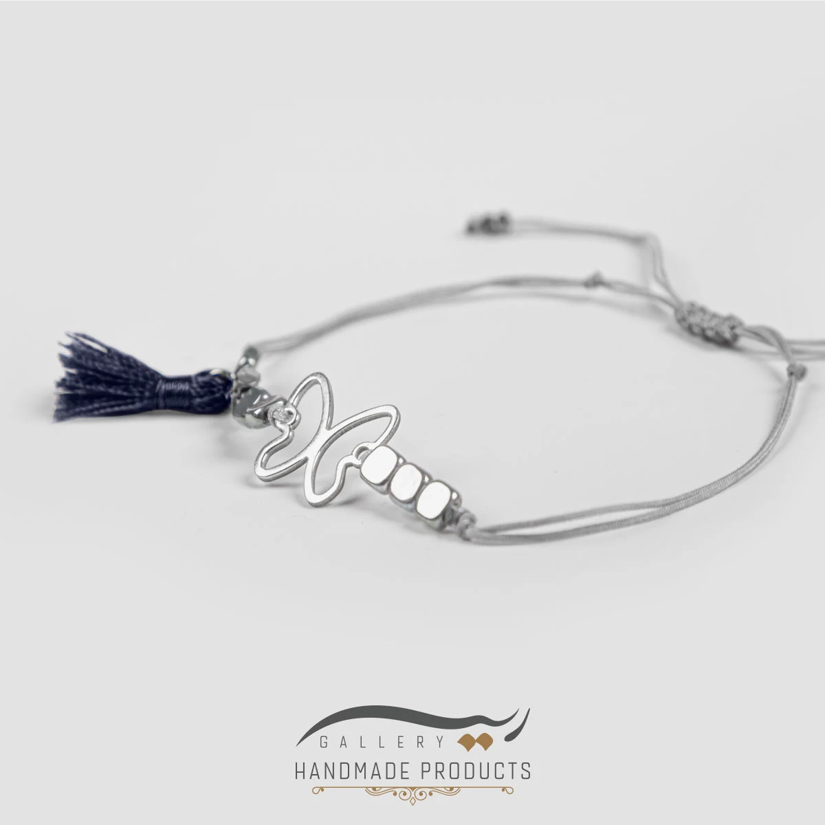 دستبند نقره زنانه پروانه دستبندی میباشد که ریسه گالری علاوه بر استفاده از نقره، برای تولید آن از سنگ حدید هم بهره برده است. در طراحی این دستبند زنانه از آویز نقره طرح پروانه استفاده شده است که از دو طرف با مکعبهای حدید احاطه شده است و از یک سو به آویز منگولهای میرسد. انتهای این دستبند نیز، بافتی کشویی – گرهای وجود دارد که باز و بسته کردن آن را ساده کرده و قابلیت تنظیم اندازه به دلخواه را فراهم می کند.