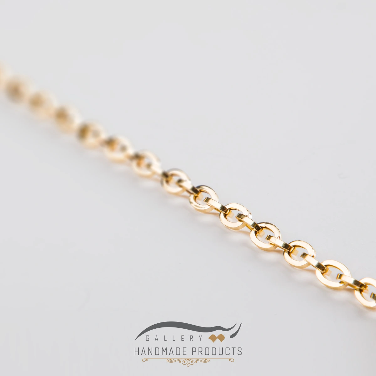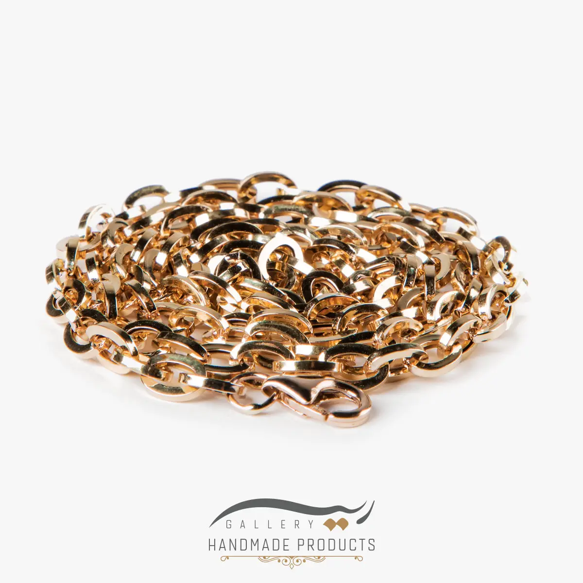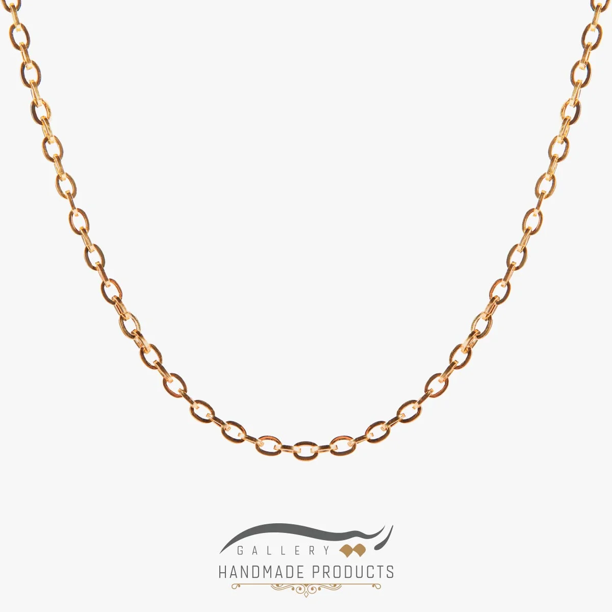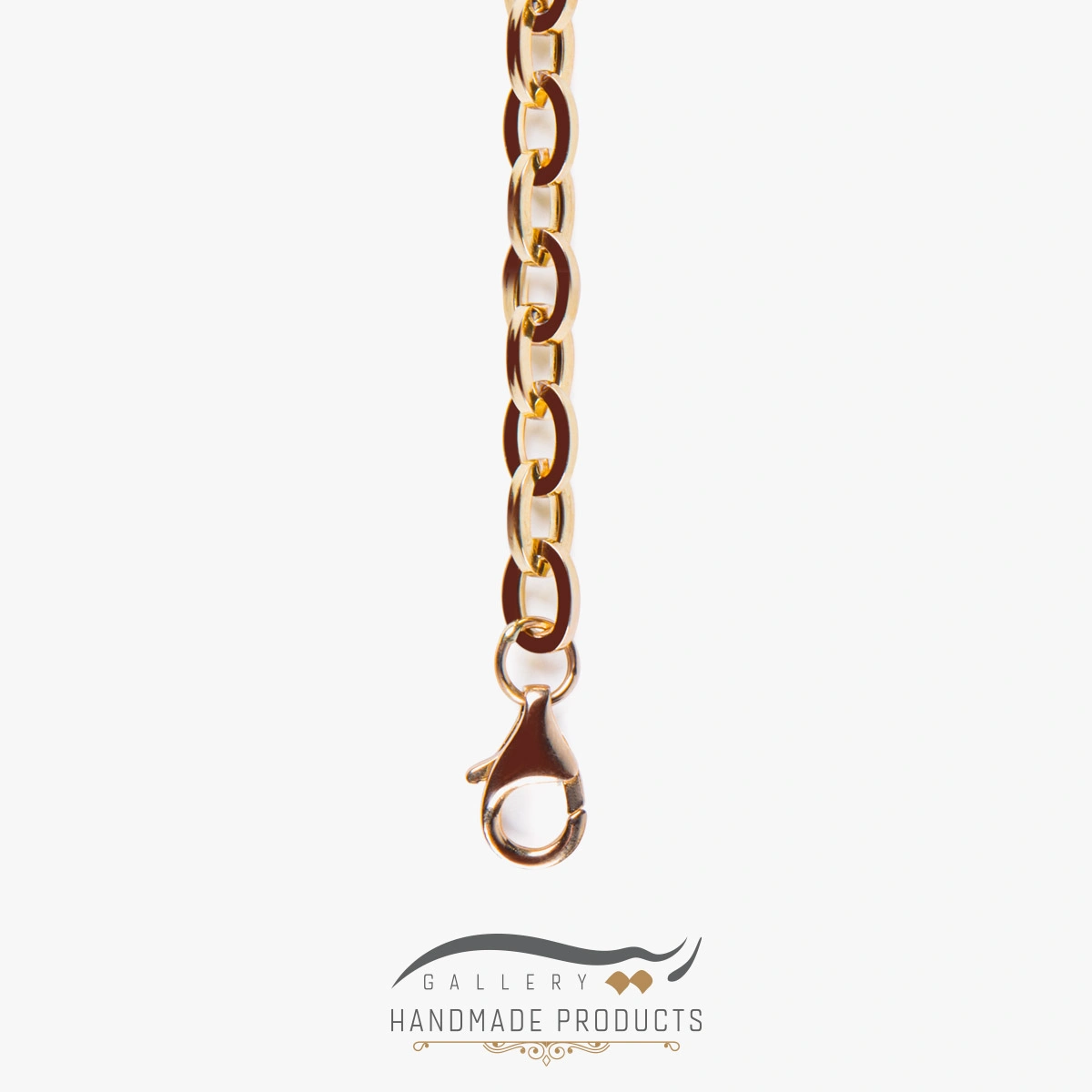 ریسه گالری در طراحی زنجیر این گردنبند طلا کابلی تنها از طلا استفاده کرده است. قفل این زنجیر مانند بسیاری از قفلهای دیگر طلا به سادگی باز و بسته میشود. زنجیر کابلی یکی از رایجترین و محبوبترین انواع زنجیرهای سبک کلاسیک است. این زنجیر از مجموعه حلقههای بیضی شکل و با یک الگوی یکنواخت تشکیل شده است این نوع زنجیرها در ضخامتهای مختلفی وجود دارد و با وجود سادگیاش بسیار زیبا است، به همین دلیل هم برای آقایان و هم برای خانمها مناسب است. طول زنجیر این محصول برابر با 55 سانتیمتر مییاشد و آقایان و خانمهایی که به سایر فلزات حساسیت دارند، میتوانند بدون نگرانی، در تمام طول روز این گردنبند را به گردنشان بیاندازند.