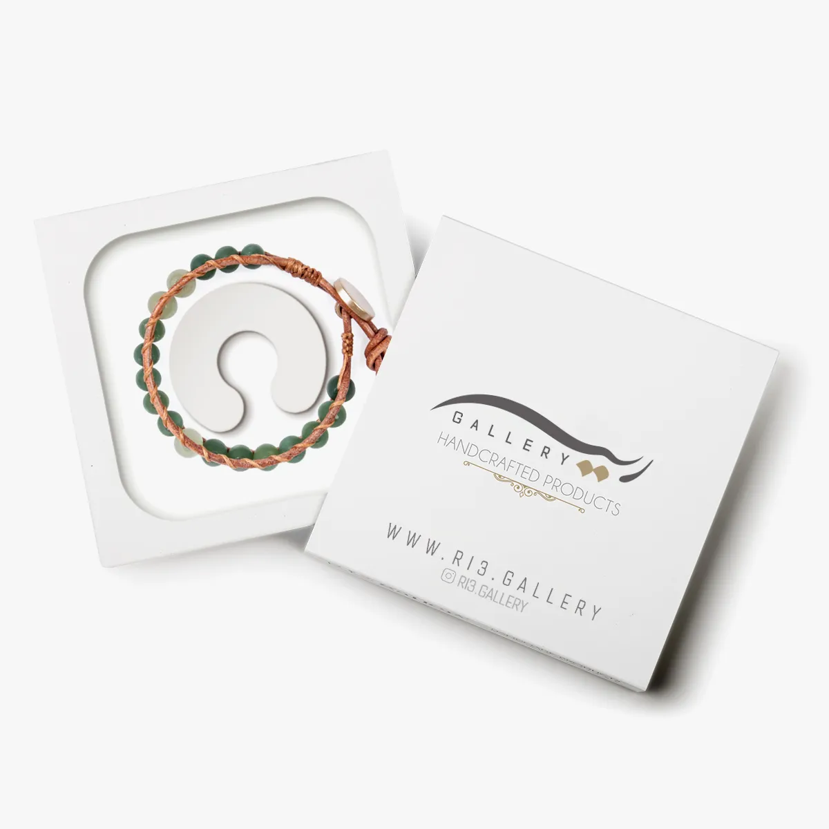 دستبند چرم زنانه شاه مقصود دستبندی میباشد که، ریسه گالری برای طراحی و ساخت آن از سنگ شاه مقصود بهره برده است. در این دستبند نخی از جنس کنف از لابهلای تمام سنگهای آن گذر کرده و میان بندهای چرم قهوهای رنگ آن قرار گرفته است. همچنین قفل این دستبند به شکل دکمهای میباشد و قابلیت تنظیم به اندازه مچ دست را به سادگی امکان پذیر میکند.