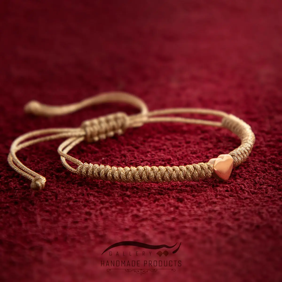 دستبند طلا زنانه قلب بافت از دستبندهای مینیمال ریسه گالری می باشد که برای طراحی آن تنها از طلا و نخ شاین استفاده کرده است. که از هر سمت توسط بافت نخ کنفی مقاومی به پلاک طلا طرح قلب متصل شده است. در انتهای این دستبند، بافتی کشویی – گرهای وجود دارد که باز و بسته کردن آن را ساده کرده و قابلیت تنظیم به اندازه دلخواه را فراهم می کند. خانمهایی که به سایر فلزات حساسیت دارند، میتوانند بدون نگرانی، در تمام طول روز این دستبند را به دستشان بیاندازند.