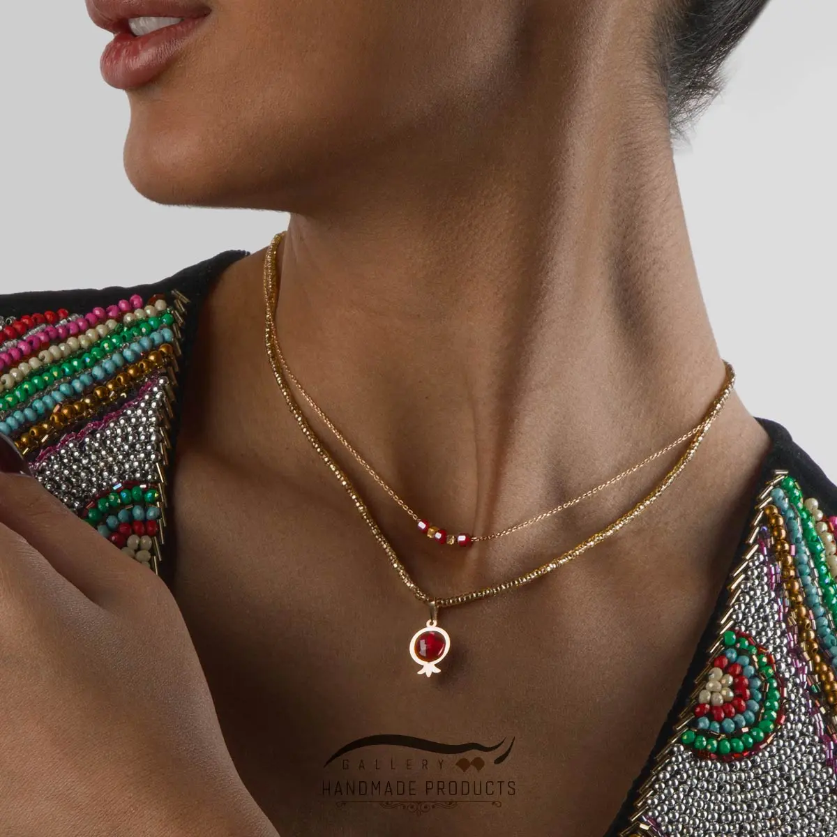 رنگ قرمز کریستالهای استفاده شده در گردنبند طلا زنانه crimson، علاوه بر جذابیت، روانشناسی جالبی هم دارد. رنگ قرمز نماد هیجان، عشق، شور و نشاط و صمیمیت است. افراد فعال و پر جنب و جوش معمولا طرفدار این رنگ هستند.