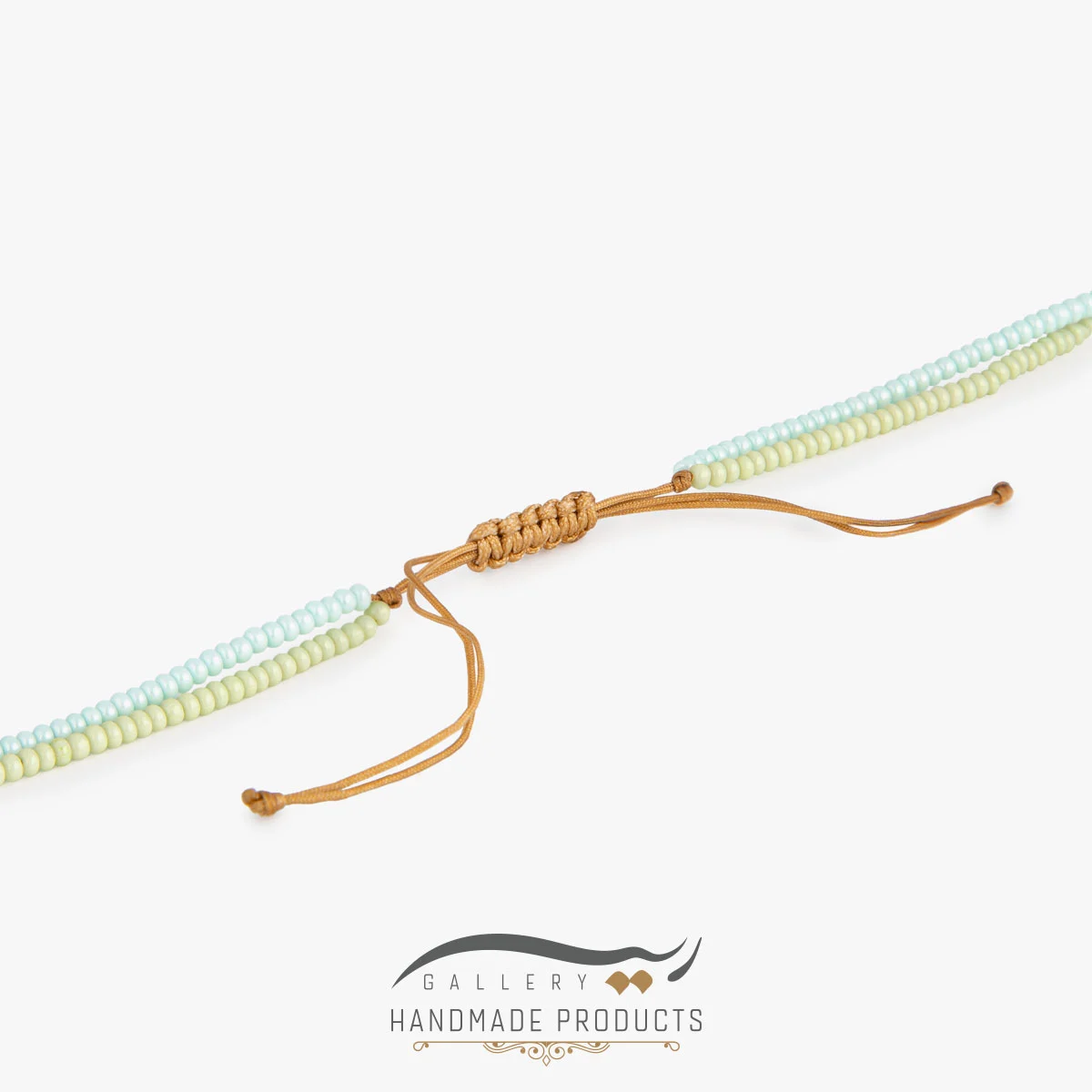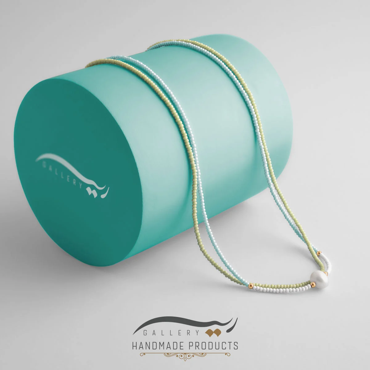 اگر به دنبال یک اکسسوری مینیمال با تم پاستیلی میگردید که در روزهای گرم و تابستانی از آن استفاده کنید، گردنبند طلا زنانه هانالی می تواند یکی از بهترین گزینهها برای شما باشد. این گردنبند از دو ردیف منجوق به رنگ های سبز و آبی ساخته شده است که توسط یک قفل کشویی-گرهای به یک دیگر وصل میشوند. به جهت حفظ ظرافت و زیبایی در این گردنبند، فقط از یک مروارید به عنوان پلاک استفاده شده که در بین گویهای طلا و منجوقهای سفید آن قرار گرفته است. طول کلی این محصول برابر با 42 سانتیمتر است که قابلیت تنظیم اندازه به دلخواه را هم دارد. خانمهایی که پوست حساسی دارند، می توانند بدون نگرانی در تمام طول روز از این گردنبند طلا زنانه استفاده کنند.