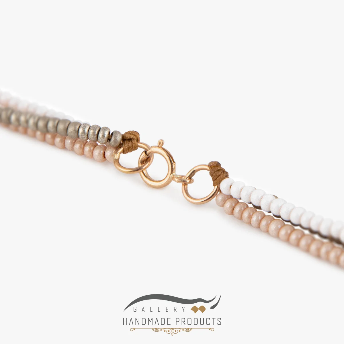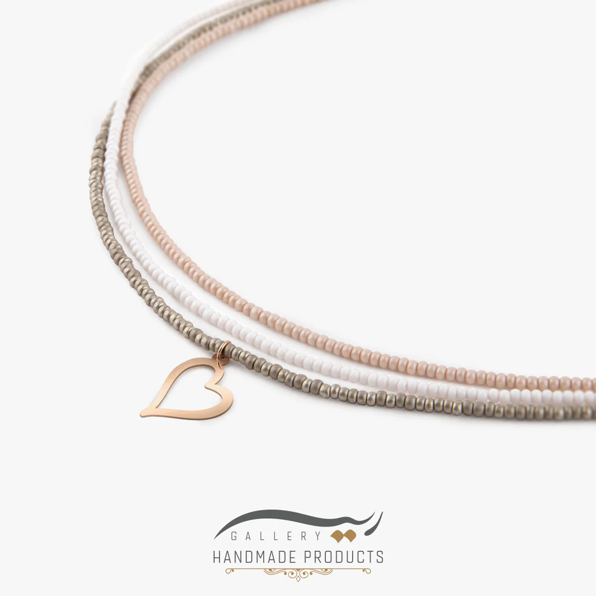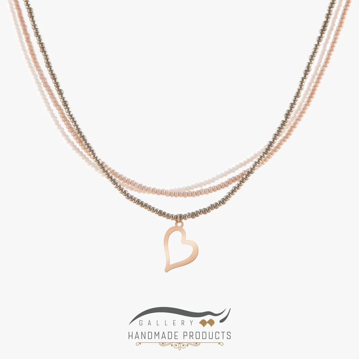 گردنبند طلا زنانه نود از جدیدترین ساختههای ریسه گالری است که تم رنگی جذاب، ملایم و در عین حال منحصر به فرد خودش را دارد. این محصول با استفاده از سه ردیف منجوق با رنگهای گرم و نزدیک به پوست طراحی شده است، به همین علت آن را Nude (نود) نامگذاری کردیم. در مرکز این محصول یک پلاک طلا با طرح قلب قرار میگیرد که در ادامه انتهای آن به یک قفل طلا منتهی میشود. متریال استفاده شده در این گردنبند کاملا ضد حساسیت بوده و افرادی که به باقی فلزات یا مواد اولیه آلرژی دارند، میتوانند به راحتی از آن استفاده کنند.