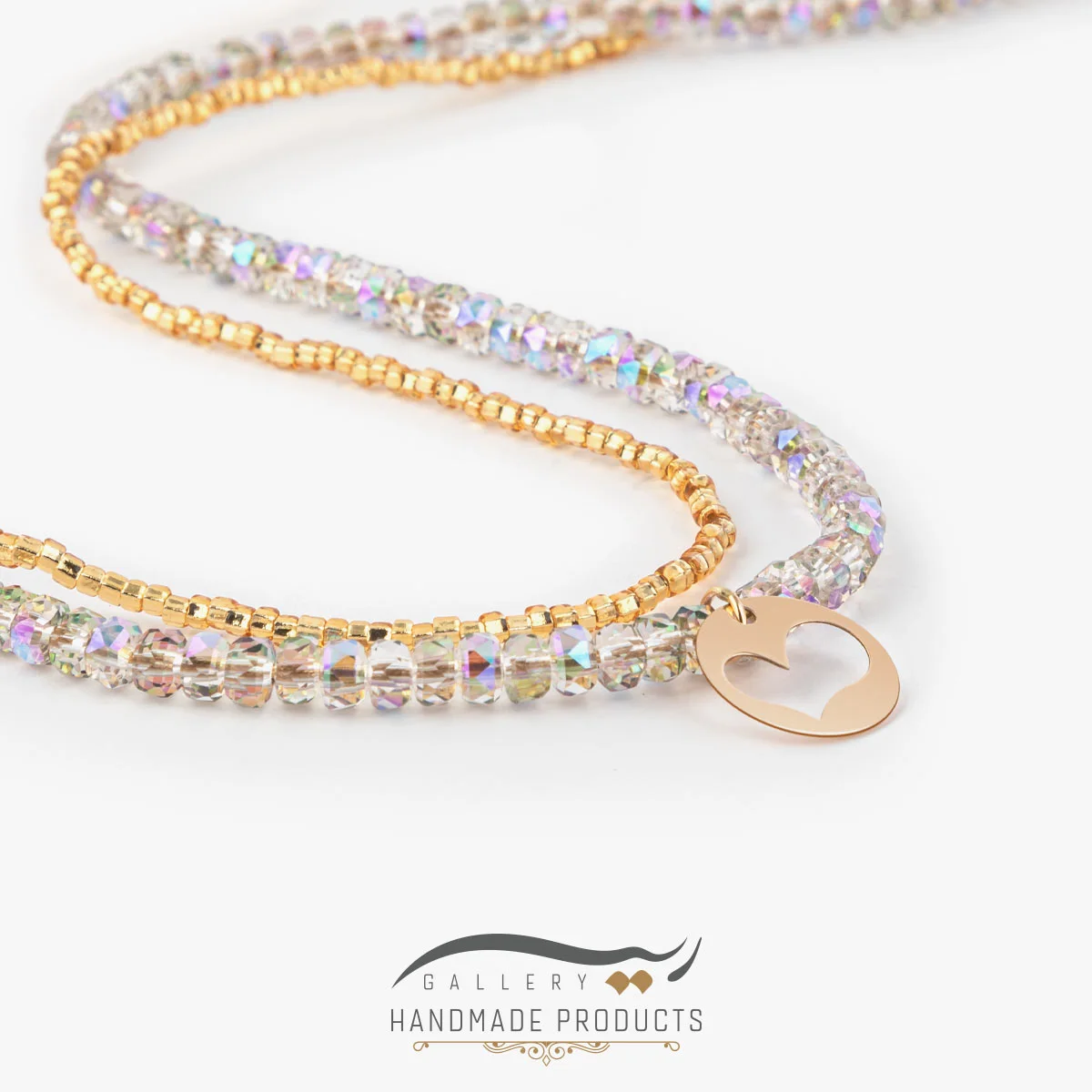 گردنبند طلا زنانه شاینورا، یکی از جدیدترین محصولات گردنبند ساخته ریسه گالری است که تم رنگی جذاب و در عین حال منحصر به فرد خودش را دارد. این محصول با استفاده از دو ردیف منجوق و کریستال با رنگهای جذاب طراحی شده است. در مرکز گردنبند، پلاک طرح قلب طلا قرار داده شده است. طول کلی این گردنبند برابر با 40 سانتی متر میباشد. در انتهای این گردنبند، بافتی کشویی – گرهای وجود دارد که باز و بسته کردن آن را ساده کرده و تا 10 سانتیمتر از هر طرف، قابلیت تنظیم سایز دلخواه را فراهم می کند.