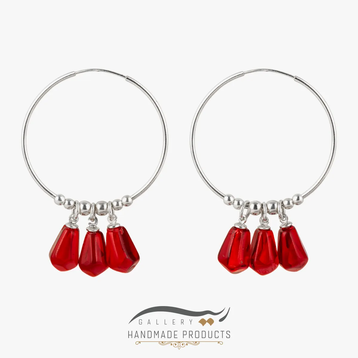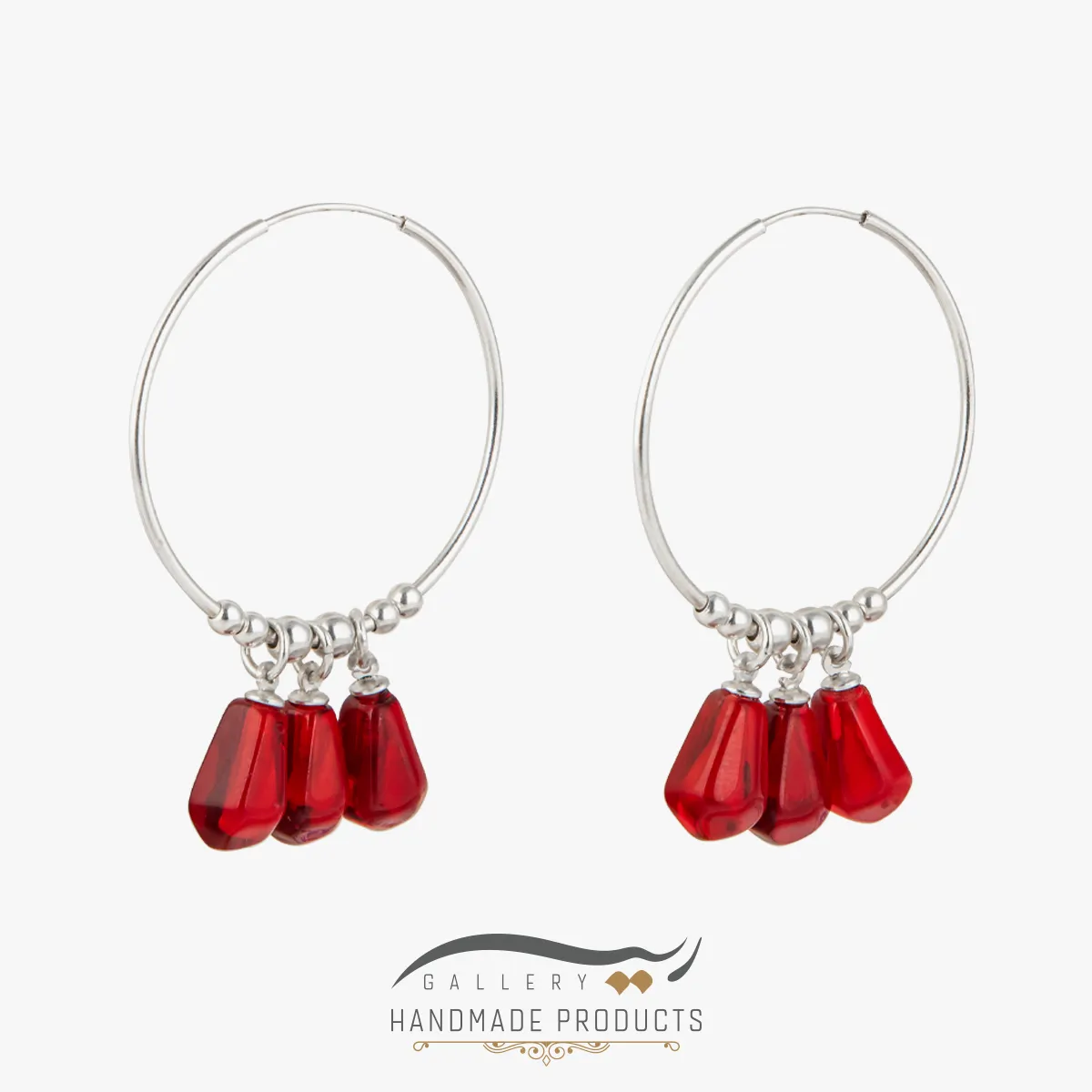 گوشواره نقره زنانه شب چله، یکی از محصولات گوشواره ماست که ریسه گالری علاوه بر استفاده از نقره، از رزین طرح دانه انار هم در ساخت آن بهره برده است. قفل این گوشواره حلقهای میباشد که به کمک آن میتوان به سادگی گوشواره را به گوش آویخت. قفل این گوشواره ضد حساسیت بوده و مناسب برای تمامی پوست ها می باشد.