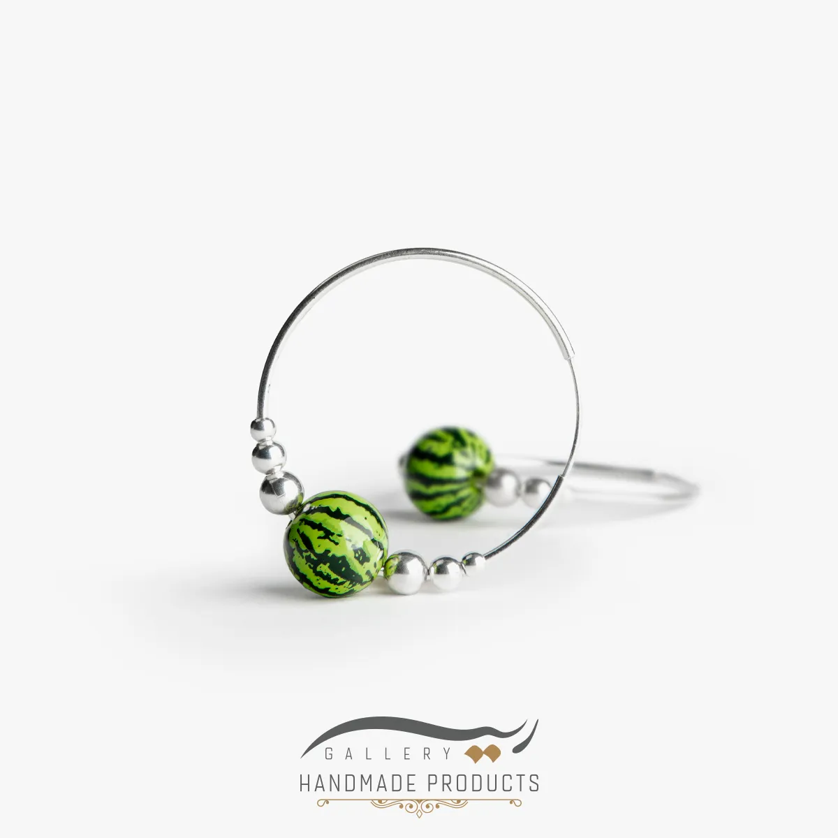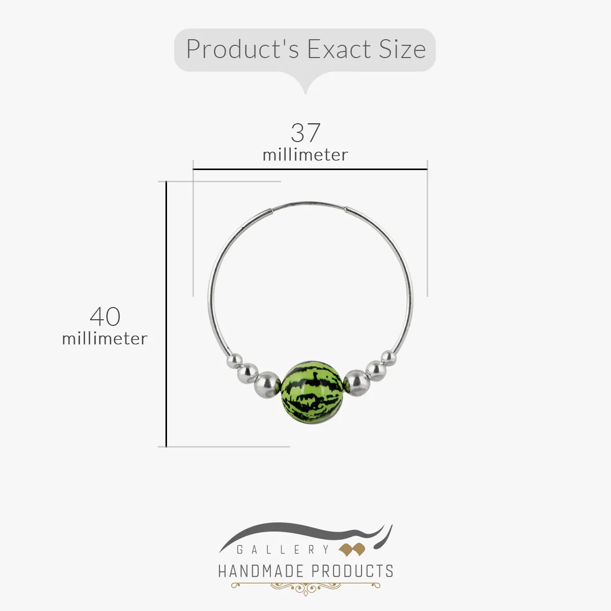 گوشواره نقره زنانه محبوبی، یکی از محصولات گوشواره ماست که ریسه گالری علاوه بر استفاده از نقره، از رزین طرح هندوانه هم در ساخت آن بهره برده است. قفل این گوشواره حلقهای میباشد که به کمک آن میتوان به سادگی گوشواره را به گوش آویخت. قفل این گوشواره ضد حساسیت بوده و مناسب برای تمامی پوست ها می باشد.