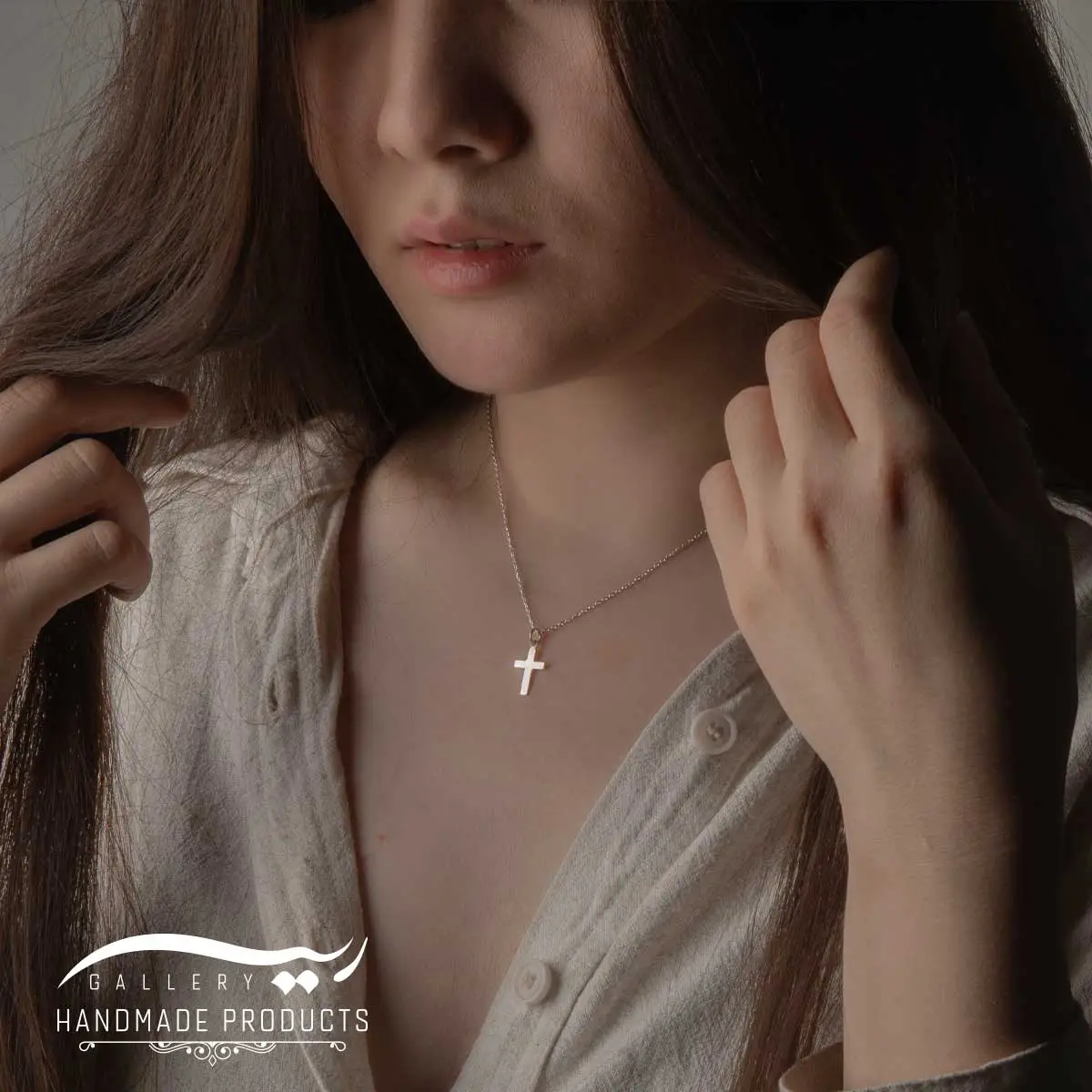 گردنبند نقره زنانه صلیب از محصولات مینیمال و ظریفی میباشد که ریسه گالری در طراحی و تولید آن از نقره استفاده کرده است. این گردنبند زنانه زنجیری به طول 40 سانتیمتر دارد. خانمهایی که به سایر فلزات حساسیت دارند، میتوانند بدون نگرانی، در تمام طول روز این گردنبند را به گردن بیاندازند.