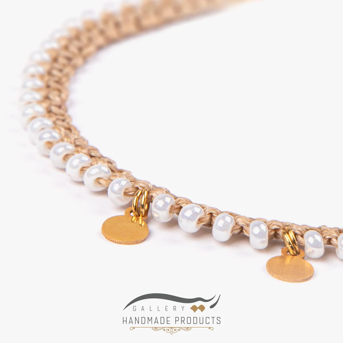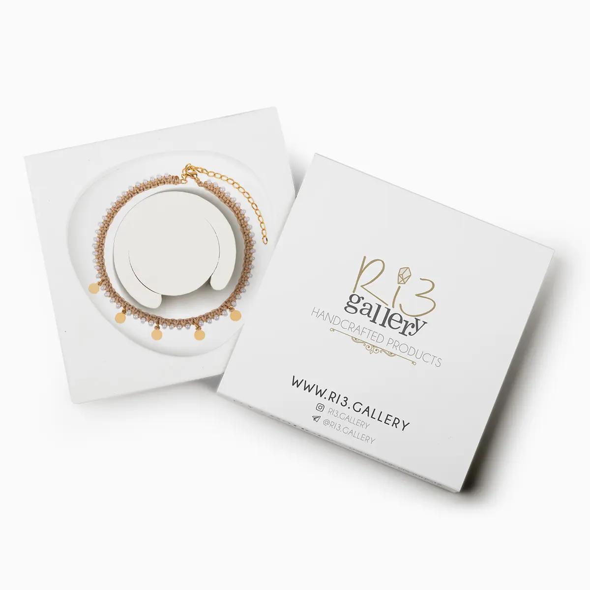 پابند طلا زنانه کولی پابندی می باشد که ریسه گالری برای طراحی و ساخت آن از طلا و منجوق صدفی استفاده کرده است. در طراحی این محصول 5 آویز سکهای طلا به کار رفته که باعث جذابیت و زیبایی بیشتر این محصول در کنار منجوقهای صدفی شده است. این پابند که مناسب برای خانمهاست اندازهای به طول 28 سانتی متر دارد که از این مقدار 8 سانتی متر آن مختص قفل و زنجیر سایز استیل میباشد. خانمهایی که به سایر فلزات حساسیت دارند، میتوانند بدون نگرانی، در تمام طول روز این پابند را به پا بیاندازند.