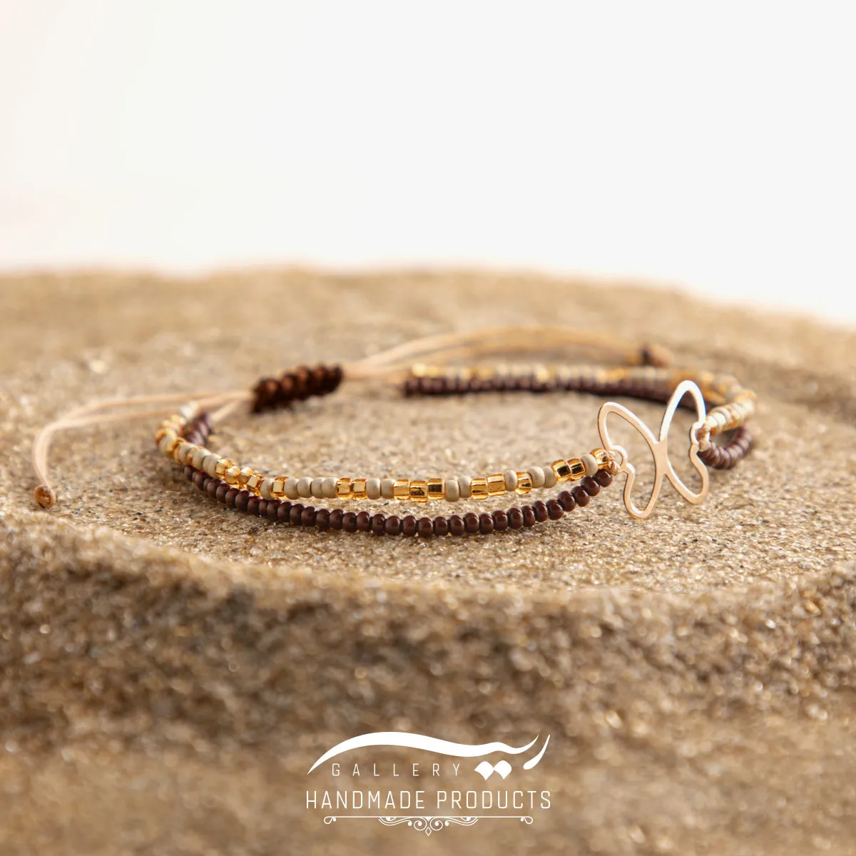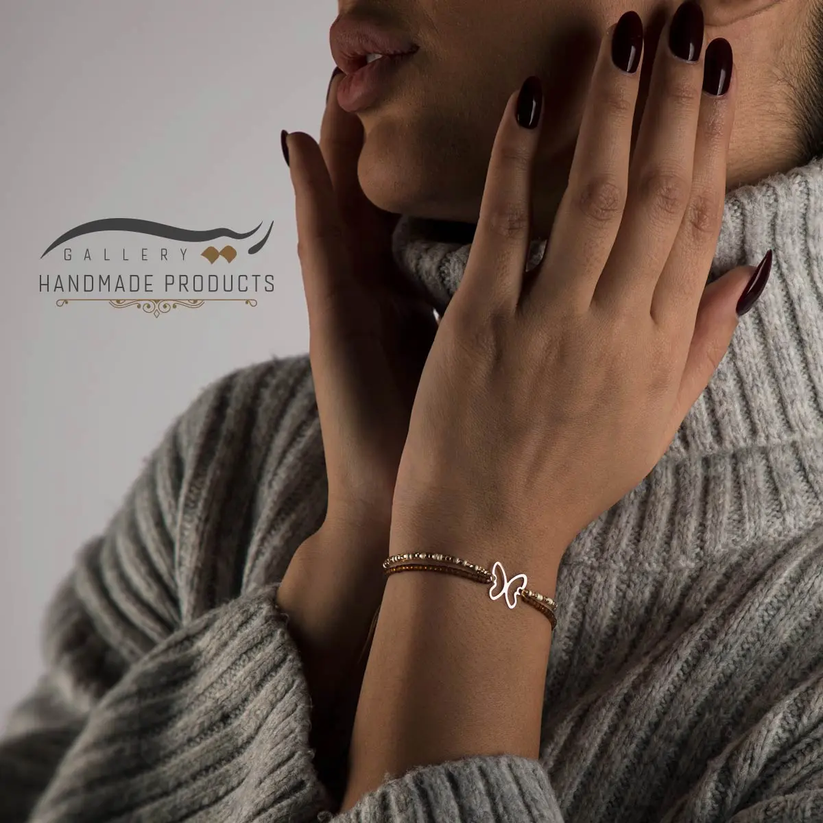 دستبند طلا زنانه پروانه گرانولا محصولی است که، ریسه گالری با استفاده از سنگهای عقیق، منجوق و طلا طراحی تولید میکند. در این محصول، سنگهای عقیق در کنار یکدیگر به همراه منجوق قرار گرفتهاند.