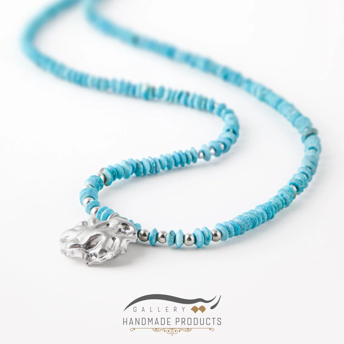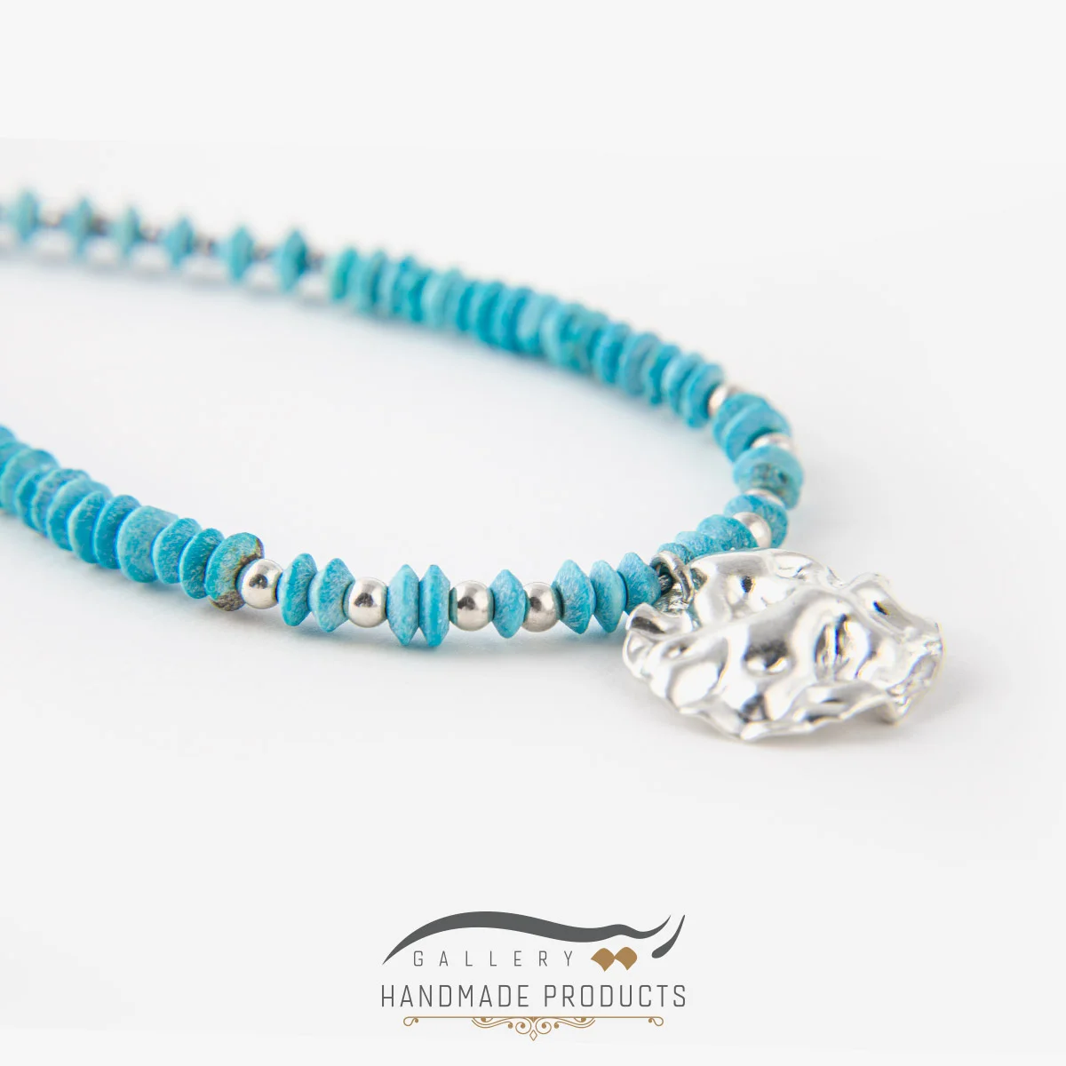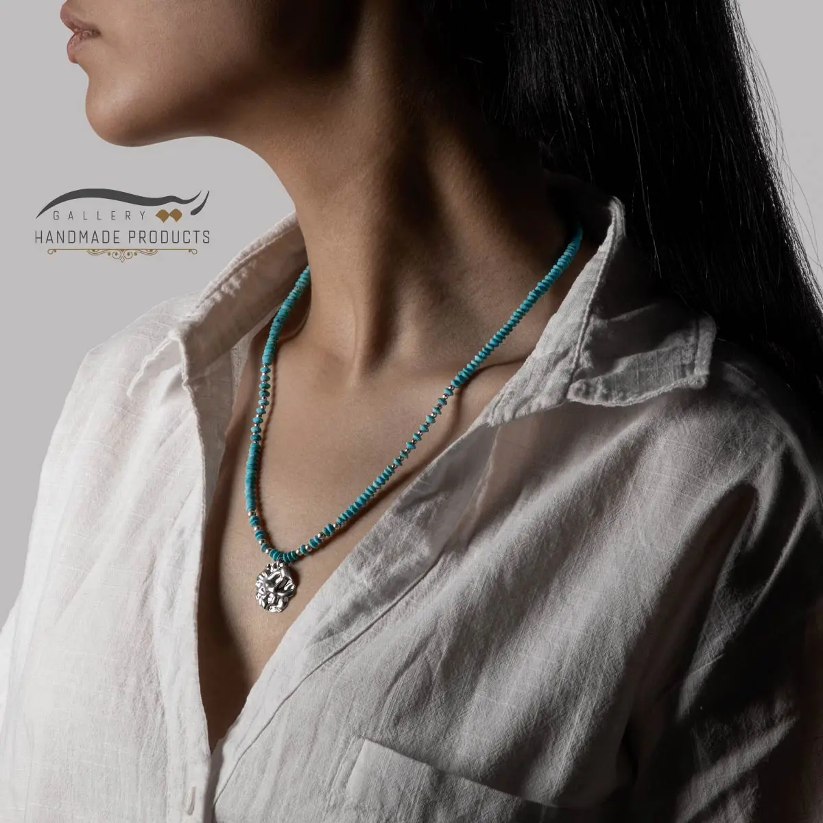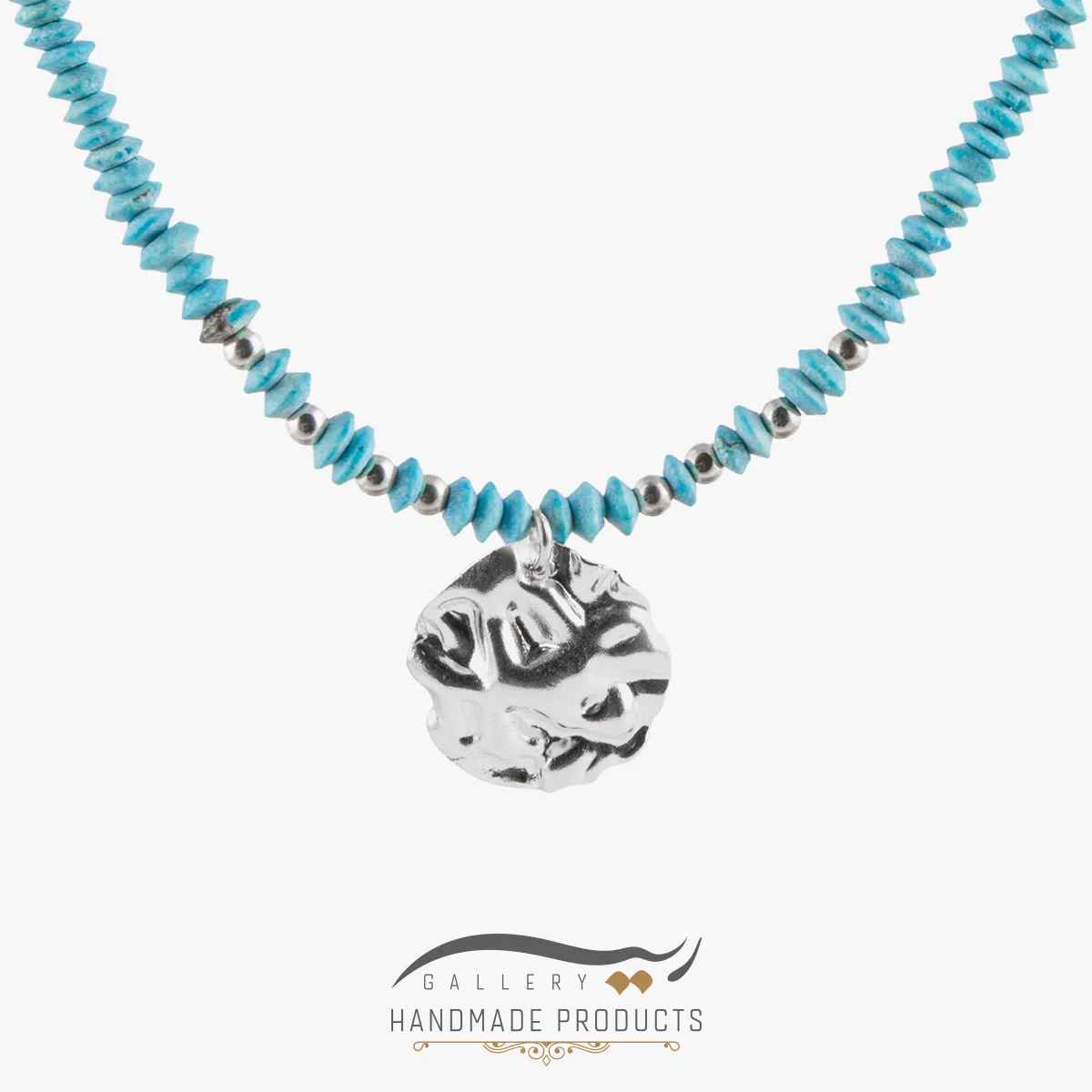 این گردنبند از نقره عیار ۹۲۵ ساخته شده که به ضد حساسیت بودن و بادوام بودن معروف است. سنگ طبیعی در پلاک، بدون آبکاری اضافی به زیبایی اصل و خالص خود باقی مانده است. گردنبند در برابر تعریق و استفادۀ روزانه مقاوم است.
