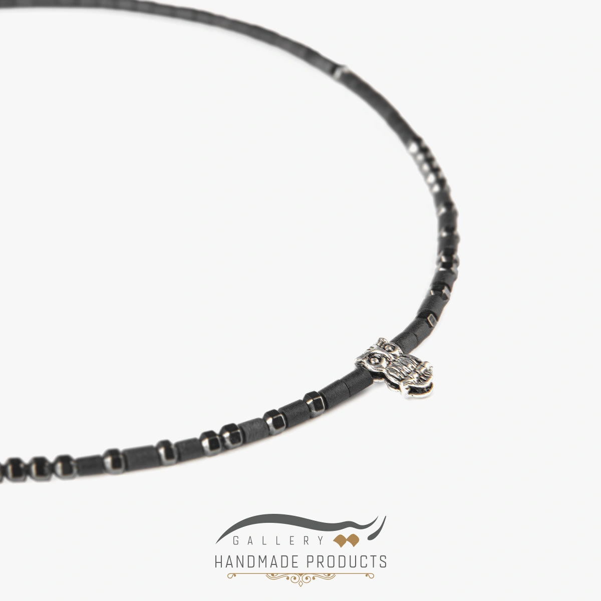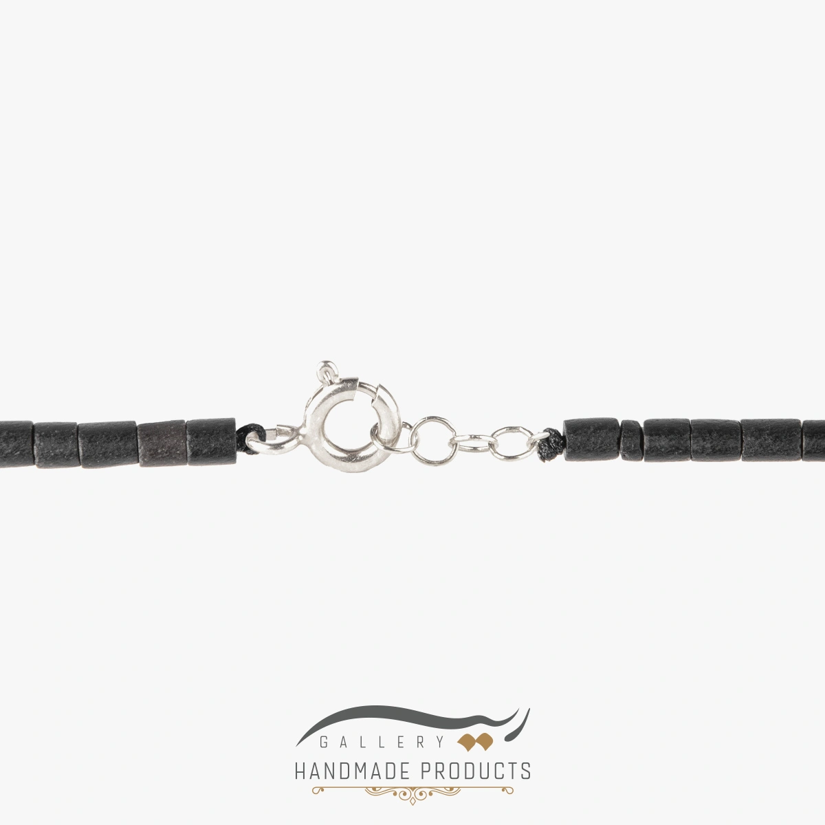 گردنبند نقره زنانه بوم یک مدل مینیمال از اکسسوری های جذاب ریسه گالریست که با سنگ های حدید و افغان به علاوه قفل و پلاک نقره ساخته میشود. همانطور که در تصویر مشاهده می کنید، زنجیر این گردنبند زنانه تماما با سنگ افغان پوشیده شده که در میان آنها حدید سیلور هم دیده میشود. این زنجیر به یک قفل و زنجیر سایز نقره منتهی میشود که طول نقریبی گردنبند را به 41 سانتی متر می رساند. خانمهایی که به سایر فلزات حساسیت دارند، میتوانند بدون نگرانی، در تمام طول روز از این گردنبند نقره استفاده کنند.