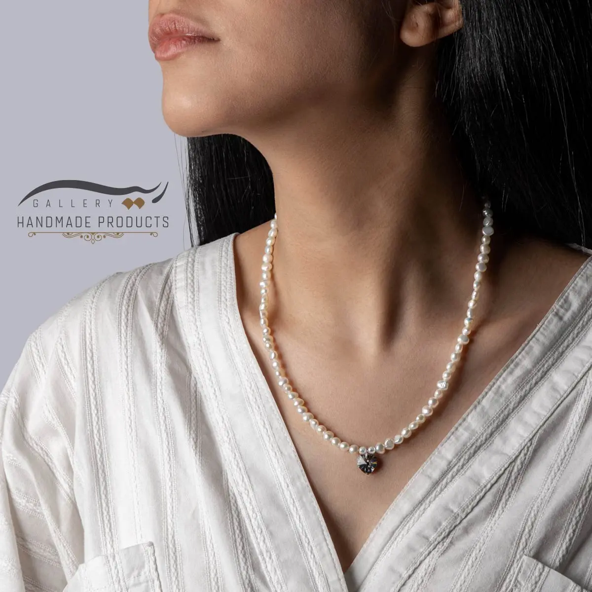 گردنبند نقره زنانه اروس از محصولاتی میباشد که، ریسه گالری برای طراحی و تولید آن از نقره و مروارید طبیعی بهره برده است. در این گردنبند زنانه از زنجیر مروارید استفاده شده است تا باعث جذابیت هر چه بیشتر این محصول شود. این محصول دارای پلاک طرح کریستال سواروسکی به شکل قلب میباشد که، نمادی از عشق و علاقه است. این گردنبند که طراحی متفاوتی دارد مناسب برای خانمها بوده و زنجیری به طول 45 سانتیمتر دارد که 5 سانتیمتر آن مختص قفل و زنجیر سایز میباشد. خانمهایی که به سایر فلزات حساسیت دارند، میتوانند بدون نگرانی، در تمام طول روز این گردنبند را به گردنشان بیاندازند.