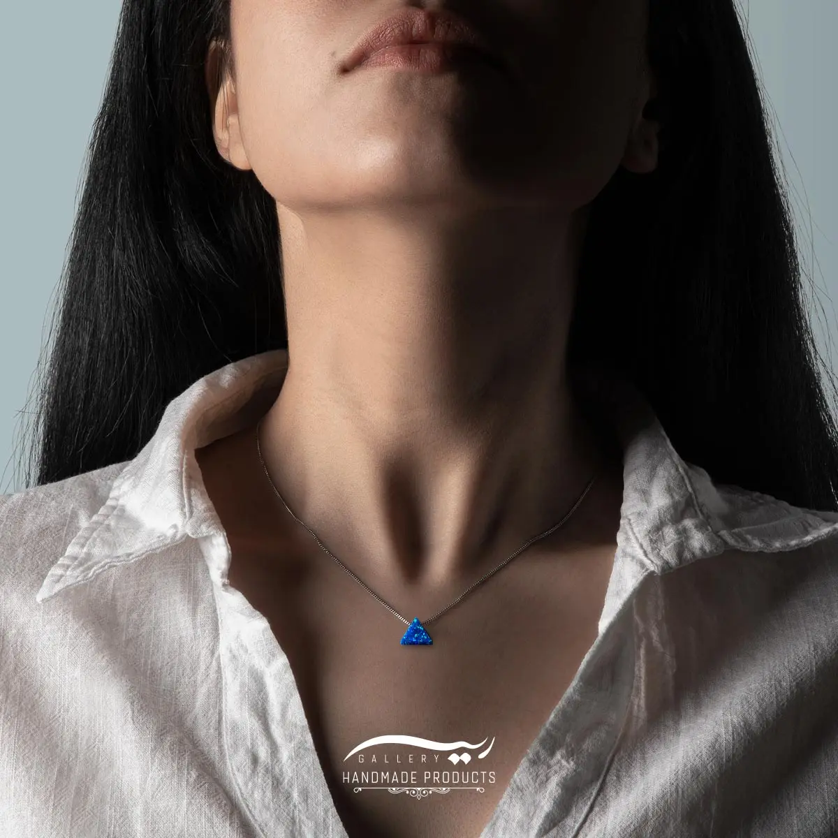 رنگ آبی پلاک گردنبند نقره زنانه اوپال مثلث، یادآور آسمان و دریاها است. از این رو؛ آرامش و صلح را القا میکند و سمبل دوام، هماهنگی و اعتماد میباشد.