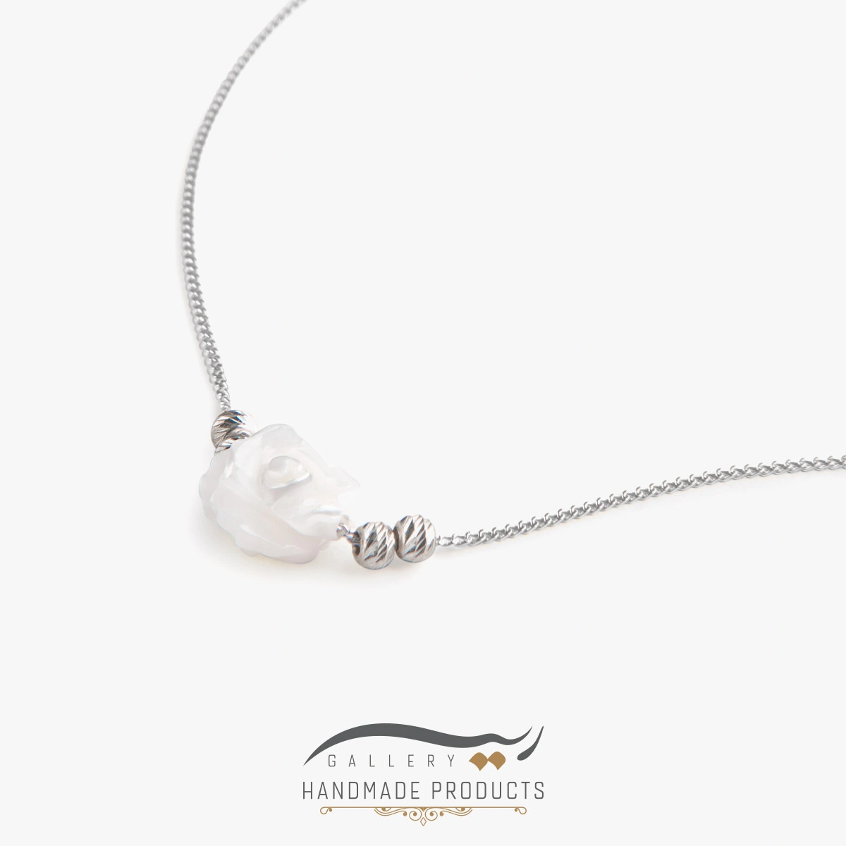 گردنبند نقره زنانه رزا از گردنبندهایی می باشد که ریسه گالری برای طراحی و تولید آن از زنجیر نقره، گوی نقره برناردو و سنگ صدف به شکل رز استفاده کرده است. در طراحی این گردنبند زنانه، پلاک صدف طرح گل رز در مرکز قرار گرفته و دو گوی نقره برناردو در سمت راست آن و دو گوی دیگر در سمت چپ آن استفاده شده است. این گردنبند که طراحی متفاوتی دارد مناسب برای خانم ها بوده و زنجیری به طول 40 سانتی متر دارد. خانمهایی که به سایر فلزات حساسیت دارند، میتوانند بدون نگرانی، در تمام طول روز این گردنبند را به گردنشان بیاندازند.
