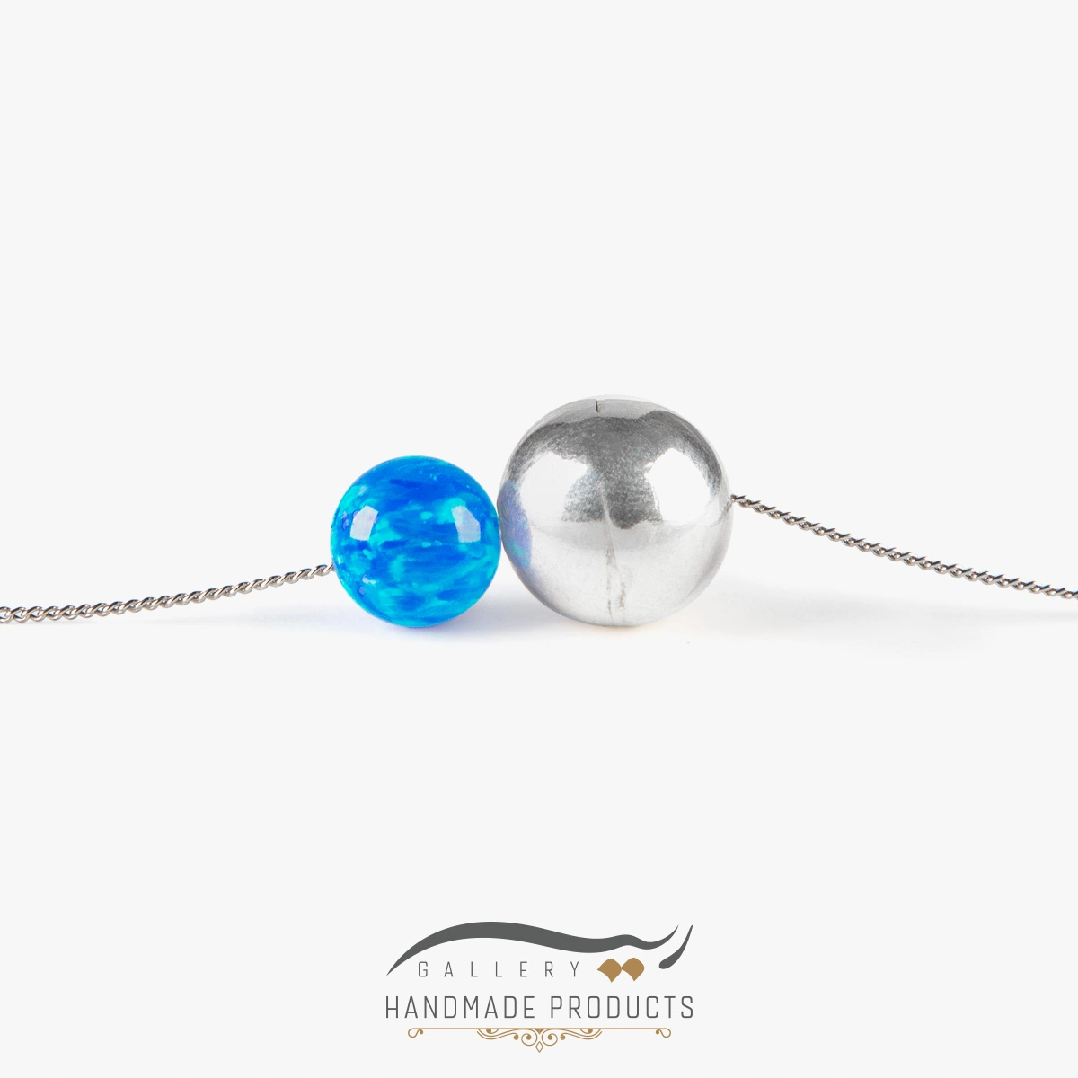 گردنبند نقره زنانه ثتیس از گردنبندهایی می باشد که ریسه گالری برای طراحی و تولید آن از نقره و اوپال بهره برده است. ثتیس در زبان یونانی به معنای پری دریایی یا الهه آب میباشد. در طراحی این محصول از اوپال و گوی توپی نقره به عنوان پلاک استفاده شده تا باعث جذابیت هر چه بیشتر این محصول شود. این گردنبند زنانه به طول 42 سانتی متر دارد. خانمهایی که به سایر فلزات حساسیت دارند، میتوانند بدون نگرانی، در تمام طول روز این گردنبند را به گردنشان بیاندازند.