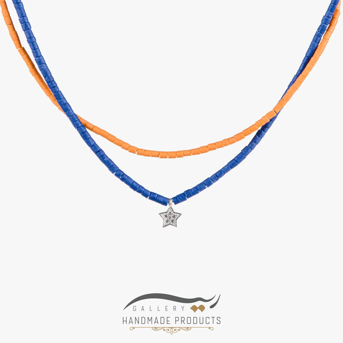 ریسه گالری برای طراحی و تولید گردنبند نقره زنانه وگا از نقره و سنگ افغان بهره برده است. این گردنبند زنانه در دو ردیف ساخته میشود، که هر دو ردیف آن از سنگ افغان در دو رنگ جذاب آبی و نارنجی پوشیده شده است. پلاک نقره طرح ستاره در ردیف دوم ای محصول بکار رفته که طول بیشتری نسبت به زنجیر اول دارد. طول کل این گردنبند برابر با 45 سانتیمتر است که از این مقدار 5 سانتیمتر آن مربوط به زنجیر سایز نقره آن می شود. خانمهایی که به سایر فلزات حساسیت دارند، میتوانند بدون نگرانی، در تمام طول روز این گردنبند را به گردنشان بیاندازند.